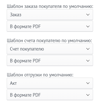А также выбрать шаблоны печатных форм и формат по умолчанию, которые будут сгенерированы при создании ЗаказаСчетаОтгрузки. Поддерживаются форматы PDF, Excel, HTML, OpenOfficeCalc.