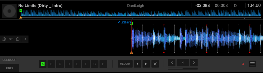 7. Загружая каждый трек из плейлиста в окно воспроизведения выше, мы можем редактировать ритмическую сетку (Grid), устанавливать Hot-Cue точки, AutoLoop и т.д.