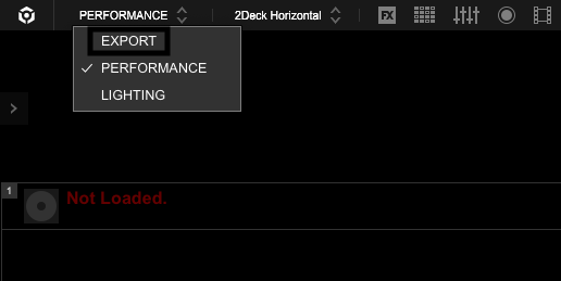 3. Открываем программу «RekordBox» и в левом верхнем углу переключаемся с режима «PERFORMANCE» на режим «EXPORT».