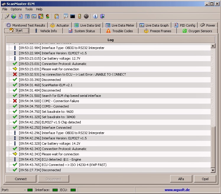 Подключение программой Scanmaster-Elm v2.1 и ELM327 v1.5 // Diagnostics program Scanmaster-Elm v2.1.