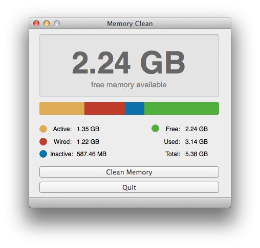 И последний ресурс, который имеют свойство «пожирать» приложения — это оперативная память или RAM. Все приложения и игры во время работы расходуют память и чем дольше они работают, тем больше памяти съедают. Работа OS X Mavericks на Mac’ах, с памятью меньше 4 ГБ может быть некомфотной и вызывать задержки. Memory Clean поможет вам выявить прожорливые приложения и освободить память в один клик.