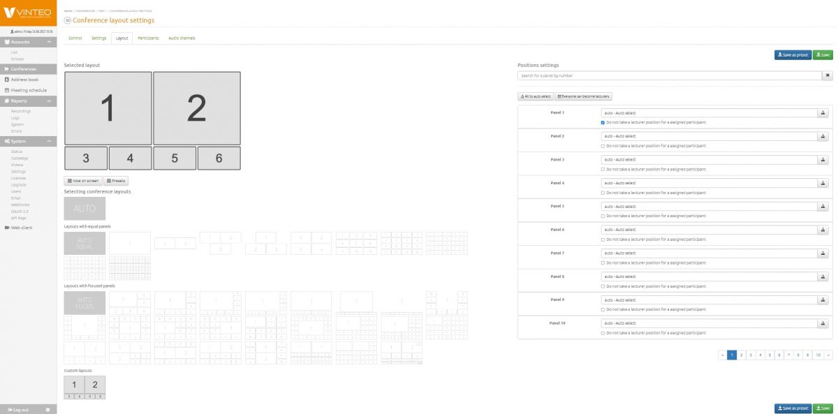 - обширный функционал администратора/модератора конференции;