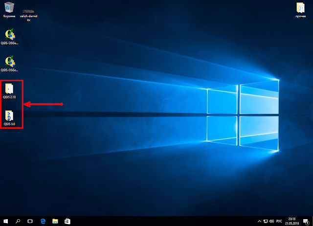 После увидим на рабочем столе 2 папки QGIS разных версий.