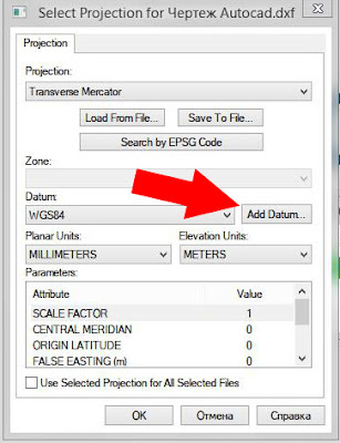 Нажимаем в окне GlobalMapper кнопку Add Datum