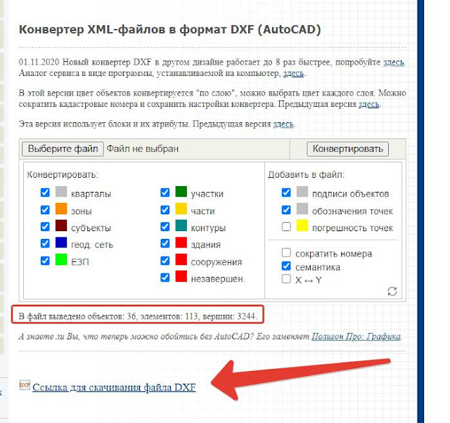 Прямая ссылка: Конвертер кадастровых XML-файлов в формат DXF (AutoCAD)