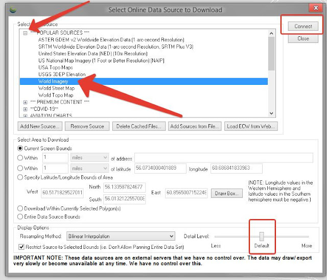 Нужно отметить, что в этот момент программа начнет качать снимки из интернета (Esri Arcgis Imagery) и может подвиснуть на пару секунд/минут, не пугайтесь, это нормально