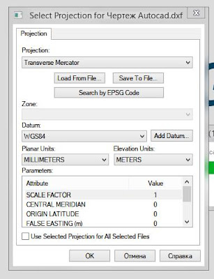 Если у вас возникнут сложности на этом этапе, просто загрузите данный файл себе на компьютер: mercator.prj и в окошке настройки проекции нажмите на кнопку «Из файла» и подсуньте программе этот файл. Жмем ОК и получаем примерно такой результат: