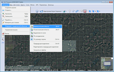 Далее нам нужно скачать отсутствующие тайлы. Для этого выделяем область интереса инструментом «Операции с выделенной областью»: меню «Операции» – «Операции с выделенной областью» – «Прямоугольная область» или нажать + .