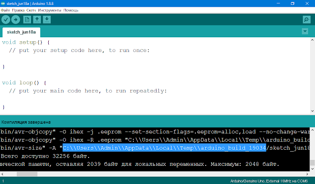 Выделенный фрагмент — это временный каталог для текущего скетча, в него помещаются все файлы, генерируемые в ходе компиляции, в том числе объектный файл.