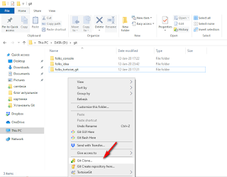 2. Установить его → Теперь, если вы будете щелкать правой кнопкой мыши в папочках, у вас появятся новые пункты меню: Git Clone, Git Create repository here, TortoiseGit