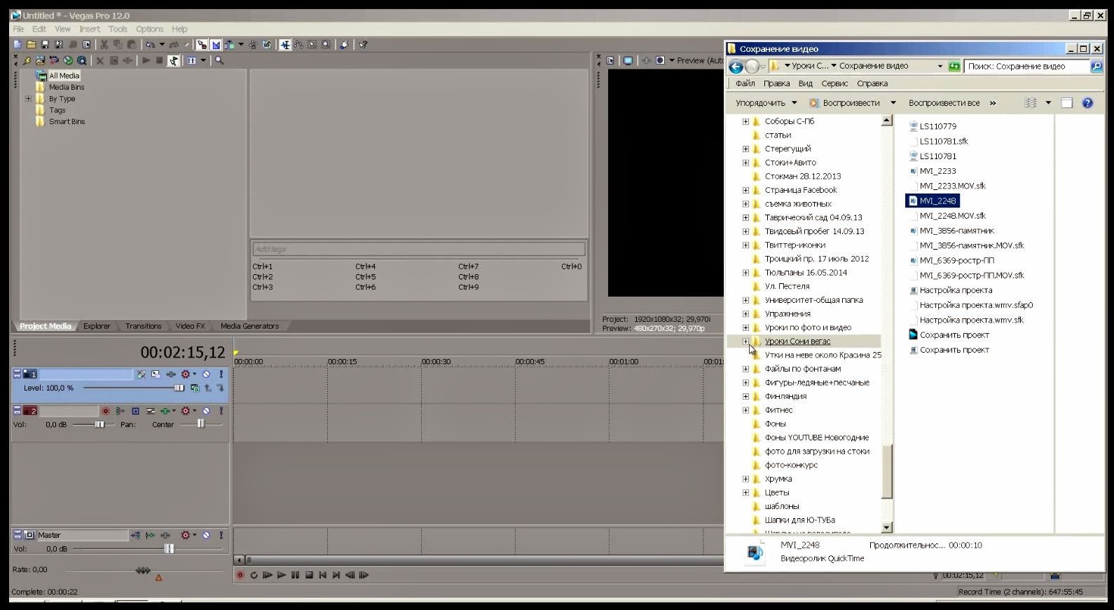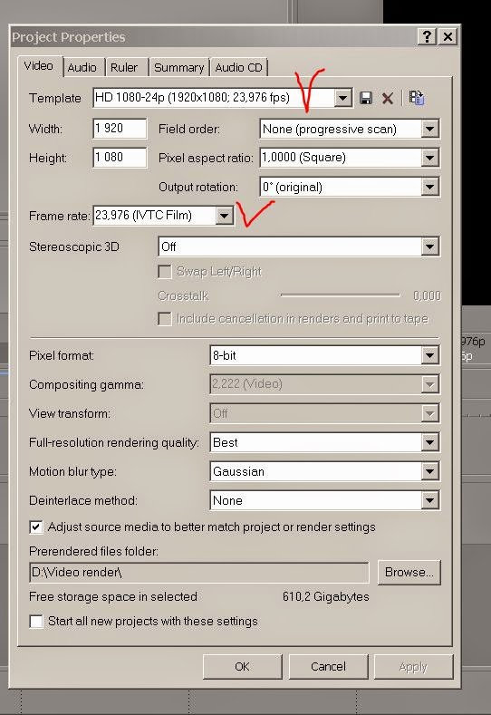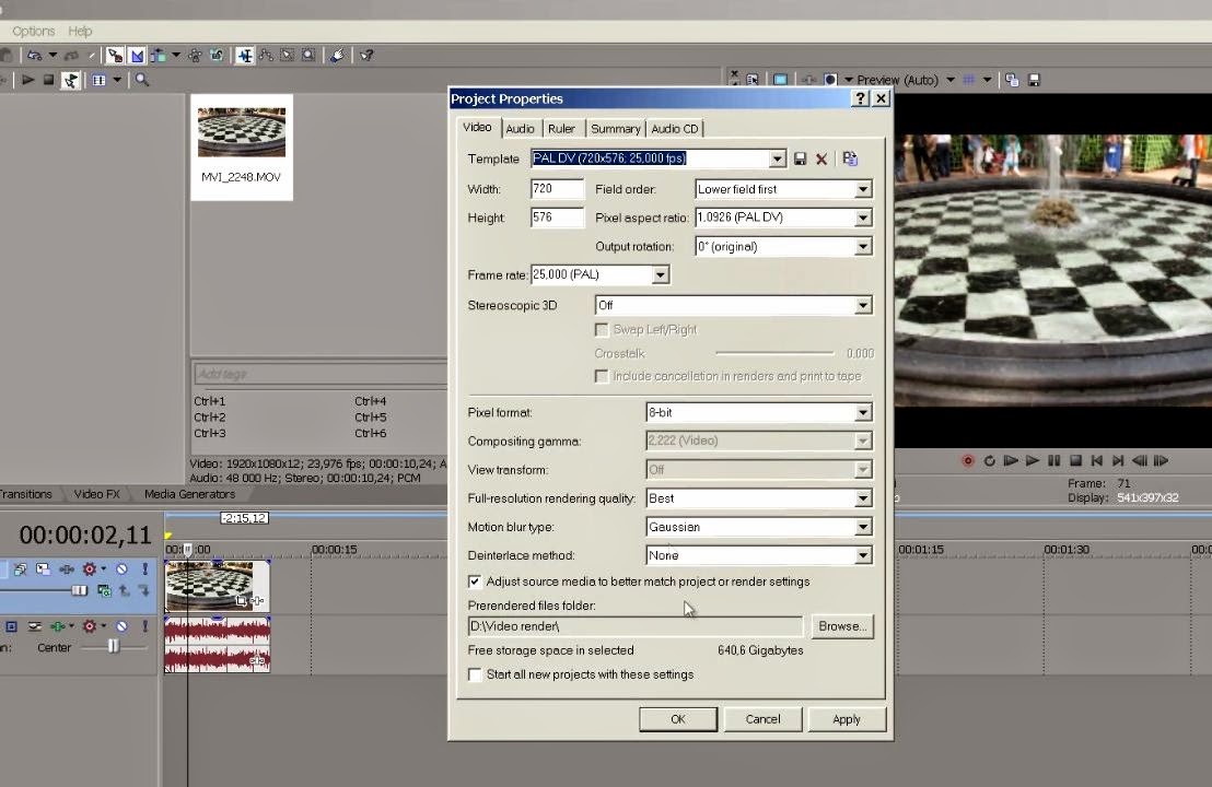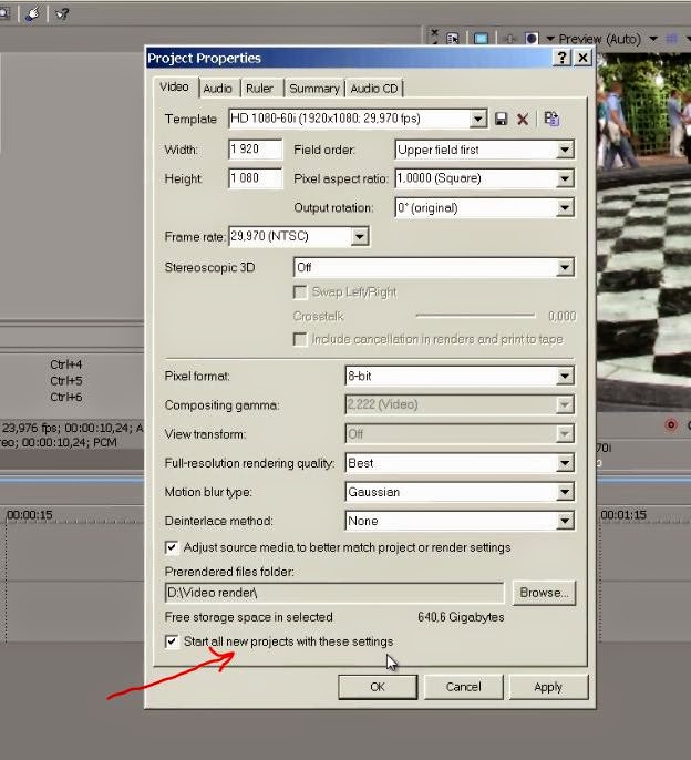 Настройка проекта в Sony Vegas
