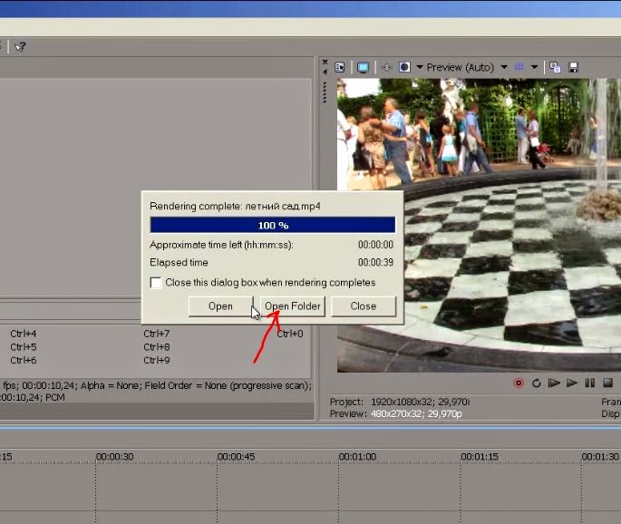 Наконец то ролик готов нажимаем на клавишу Open folder и проверяем качество нашего творения.