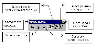 Для вызова этой панели необходимо выполнить последовательно команды меню: “Вид | Панель инструментов | Visual Basic”.