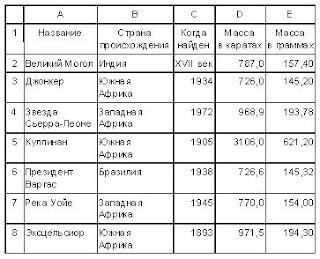 В таблице представлена информация о самых ценных алмазах в мире. Нам требуется создать макрос для нахождения алмаза с максимальной массой в граммах.