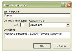 Рис. 2. Окно “Запись макроса”