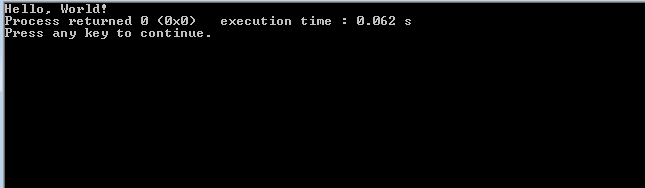 Теперь у вас есть свой файл main.cpp , который вы можете изменять при желании. На данный момент, он просто говорит: Hello World! , поэтому мы можем запустить его таким, какой он есть. Нажмите F9 , для того чтобы сначала скомпилировать, а потом запустить его.