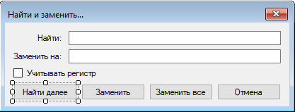 - «Найти и заменить» (mEditFind): Ctrl + F