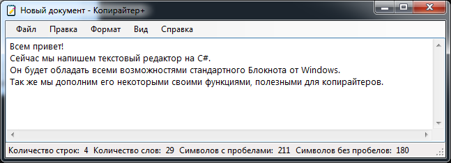 На этом работа с внешним видом нашего блокнота завершена. Уже сейчас вы можете запустить проект и посмотреть как всё выглядит. Однако, пока это лишь «бездушная» оболочка. В следующих частях мы наполним её всеми функциями стандартного блокнота Windows.