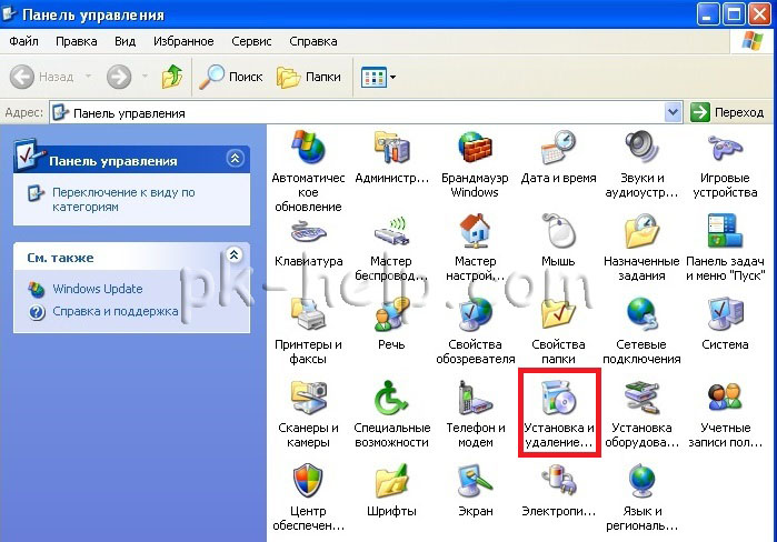 Удаление программ в Windows XP.