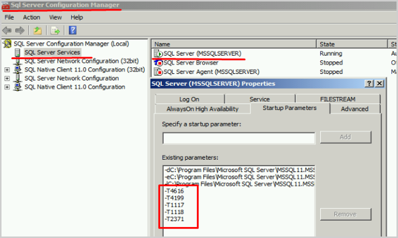 Включить на промышленном сервере следующие флаги трассировки глобально
