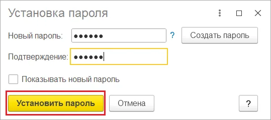 Установка пароля в пользовательском режиме через 1С.