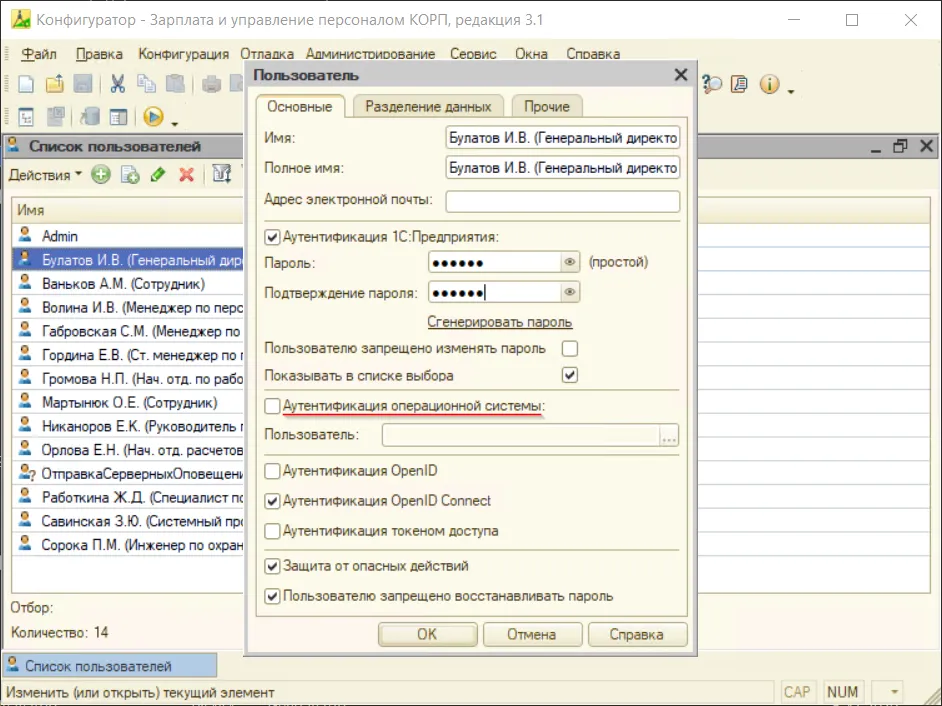Учетные записи. Защита базы или как поставить пароль на 1С.