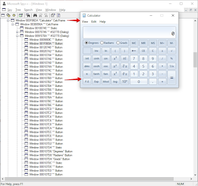 - Анализируя стандартный Win32 калькулятор, мы видим, что все элементы управления окна появились в дереве, в иерархическом виде.