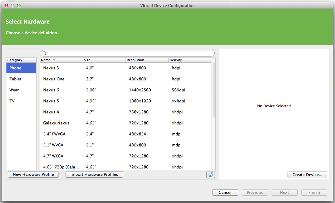 Чтобы создать виртуальное устройство, нажмите кнопку Create Virtual Device . Появится окно создания.