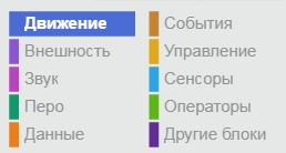 Каждая категория блоков имеет свой цвет и отвечает за выполнение определенных функций.