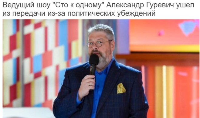 В апреле СМИ сообщили, что предыдущий ведущий «Сто к одному» Александр Гуревич покинул программу. Он вел передачу с ее начала.