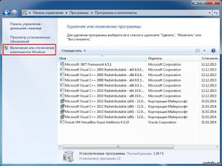 Откройте меню пуск, войдите в панель управления, дальше откройте пункт «программы» а теперь «программы и компоненты», в левой стороне открывшегося окна щёлкните по пункту «включение или отключение компонентов».