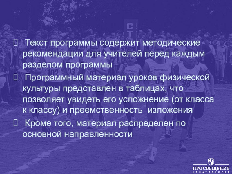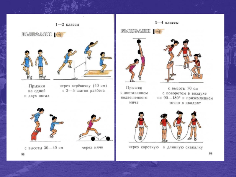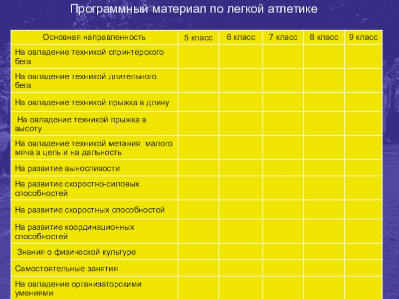 Программный материал уроков физической культуры представлен в таблицах, что позволяет увидеть его усложнение (от класса к классу) и преемственность изложения