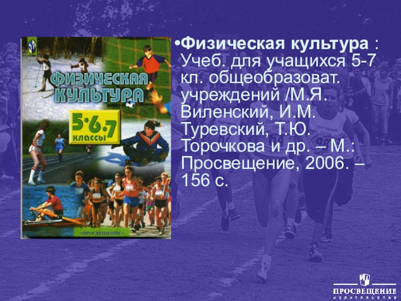Слайд 28Физическая культура : Учеб. для учащихся 5-7 кл. общеобразоват. учреждений /М.Я.Виленский,