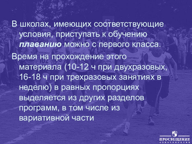 Слайд 13В школах, имеющих соответствующие условия, приступать к обучению плаванию можно с