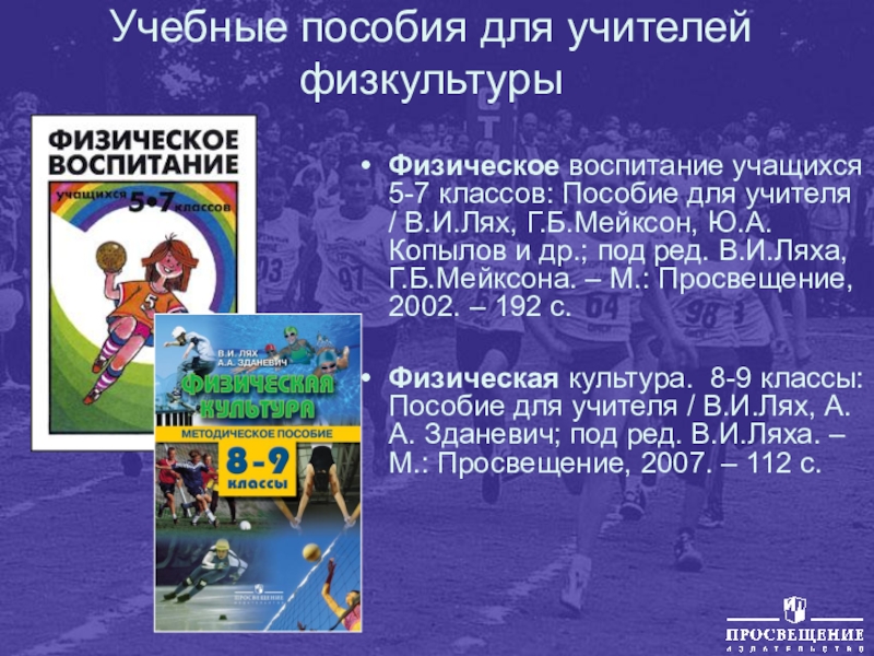 Физическая культура. 8-9 классы: Пособие для учителя / В.И.Лях, А.А. Зданевич; под ред. В.И.Ляха. – М.: Просвещение, 2007. – 112 с.