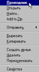 · Щёлкните правой кнопкой на пиктограмме Мой компьютер и выберите из появившегося меню опцию Проводник, как показано на рисунке;