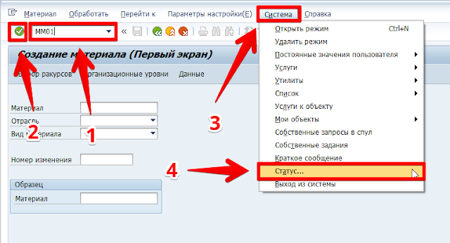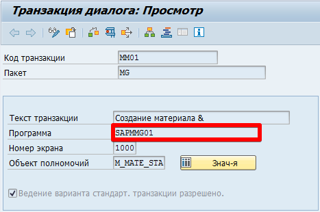Для того, чтобы объяснить вам я взял для примера транзакцию «MM01 — Создание основной записи материала». Пожалуйста, выполните следующие шаги, чтобы знать различные способы поиска UE и BADI.