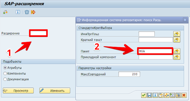 - Запустите транзакцию SMOD, переместите курсор в поле ввода имени расширения и нажмите кнопку F4.