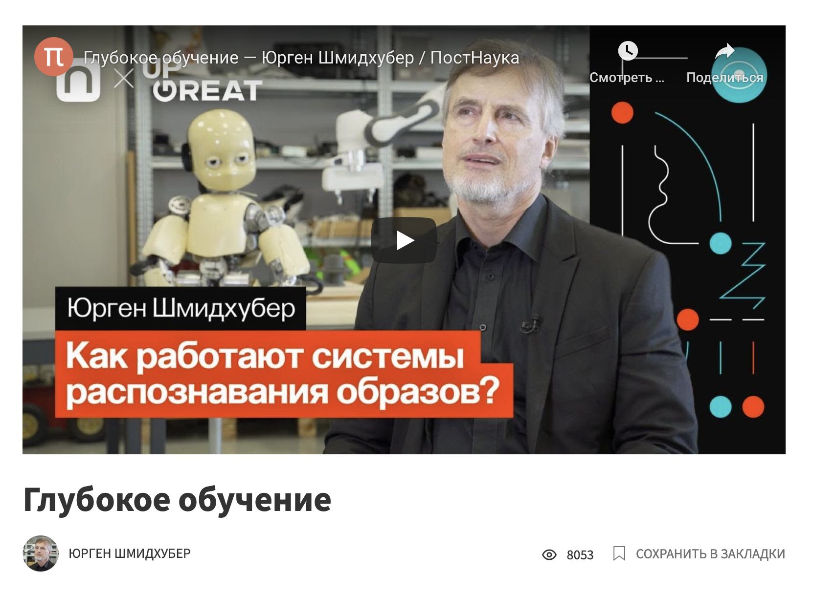 Лекция профессора искусственного интеллекта Юргена Шмидхубера — часть курса «Глубокое обучение».