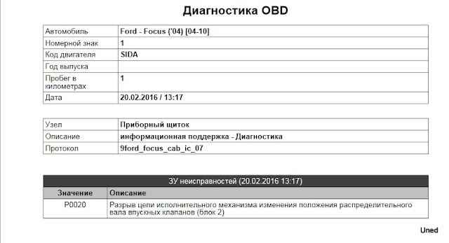 Коды ошибок и их расшифровка выводятся в интерфейсе программы сканера. Так же можно изучить полную базу ошибок для вашего автомобиля в разделе: «OBD2 коды ошибок Форд Фокус 2»