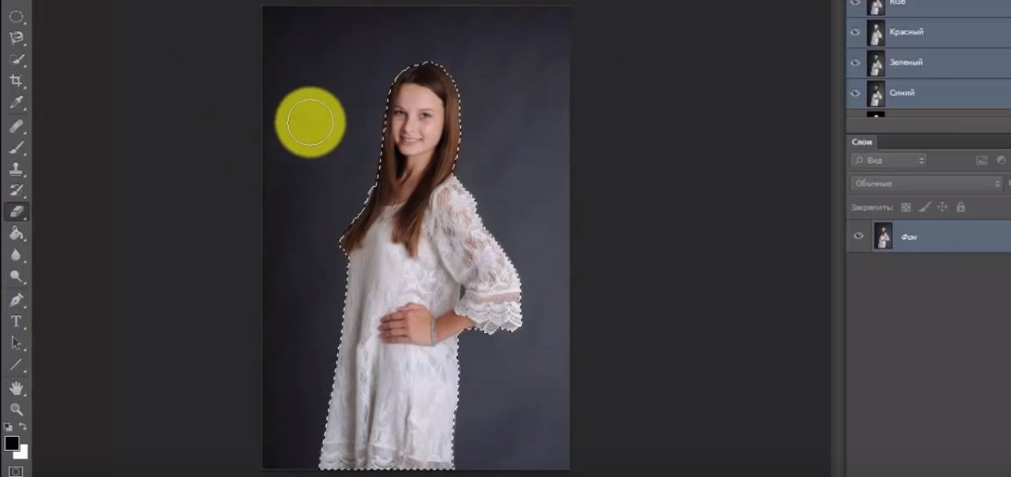 - Выделить объект. Быстрое выделение — инструмент «Лассо».