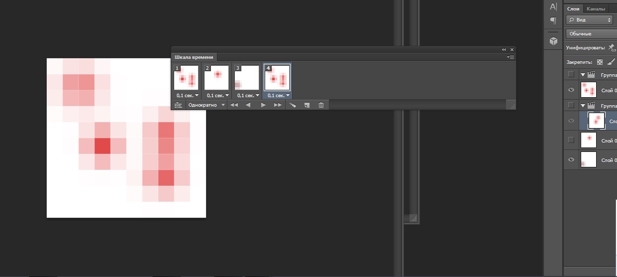 13. Анимация создана. Чтобы ее просмотреть нажимаем значок «Play» на панели «Анимация».