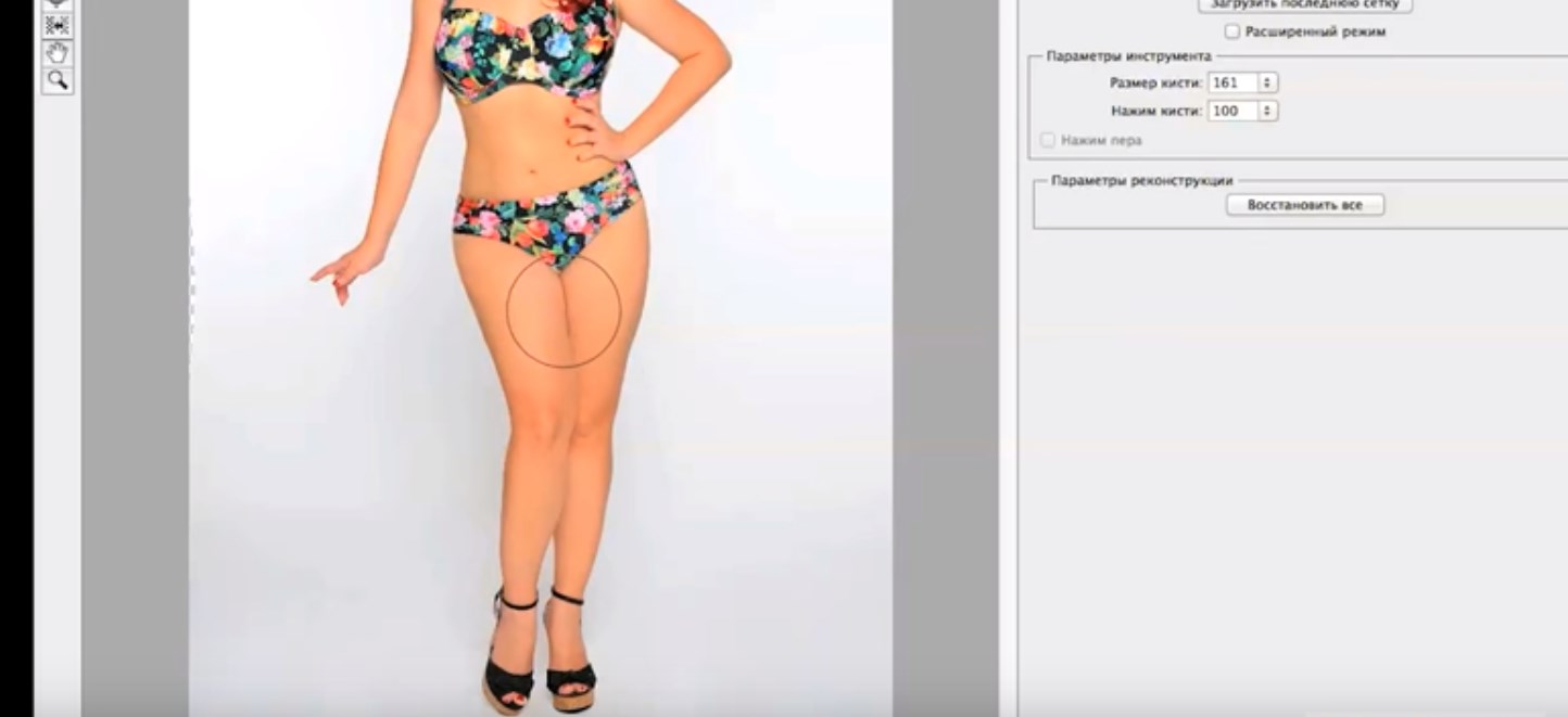 Выбираем необходимый диаметр кисти и подтягиваем нужные участки на фотографии.