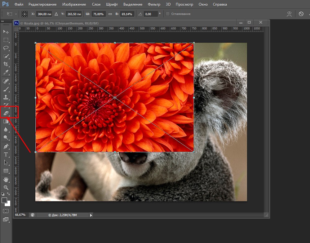 4. Использовать инструмент «Ластик» и стереть все лишнее.