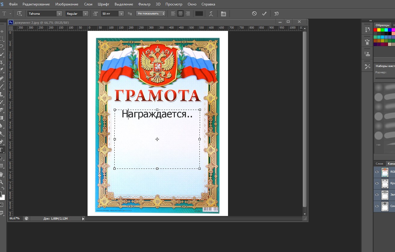 Выбираем необходимый шрифт и цвет написания текста. Вводим необходимый текст.