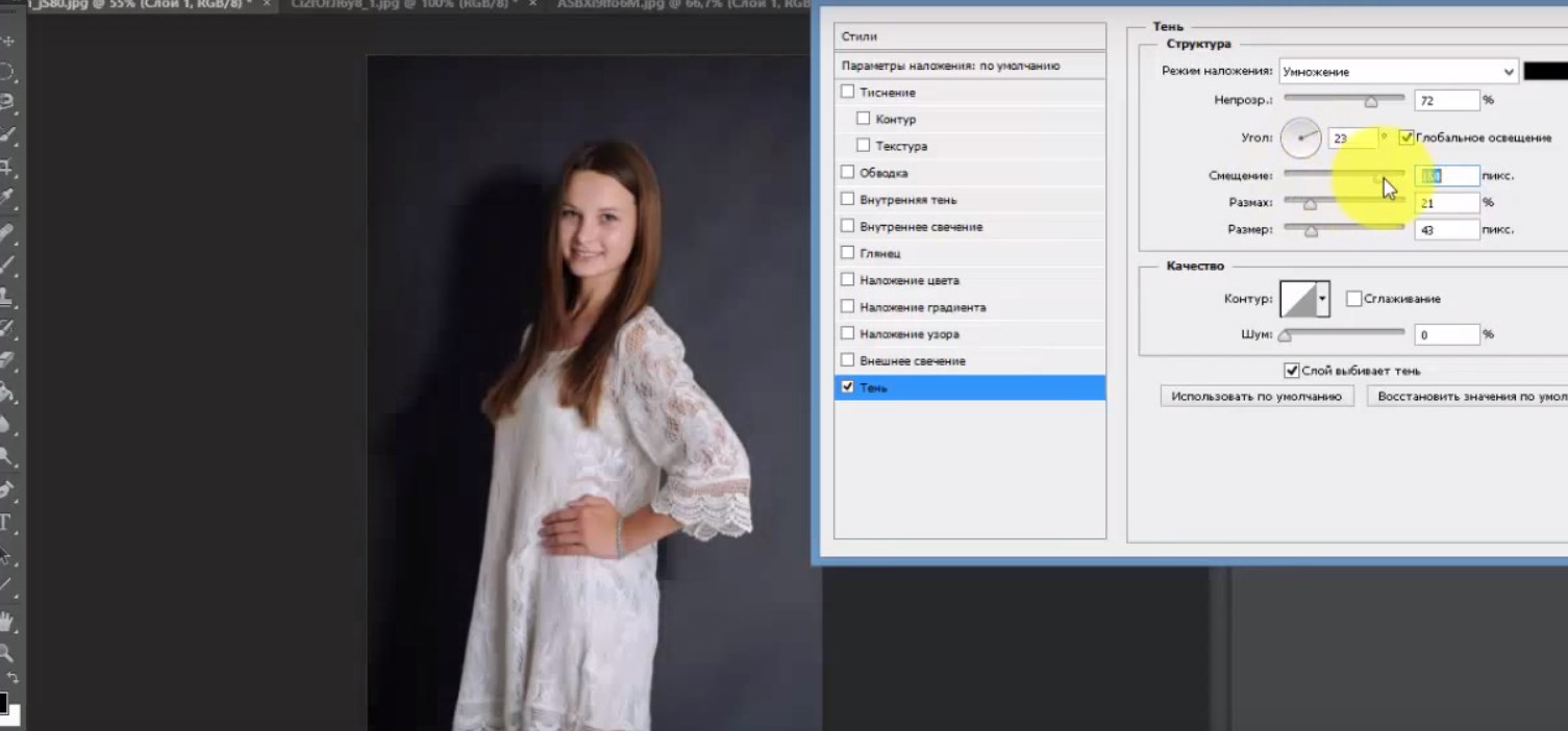 - Теперь удерживая CTRL, перетащить ползунок вверх или вниз, в зависимости, где будет располагаться тень.
