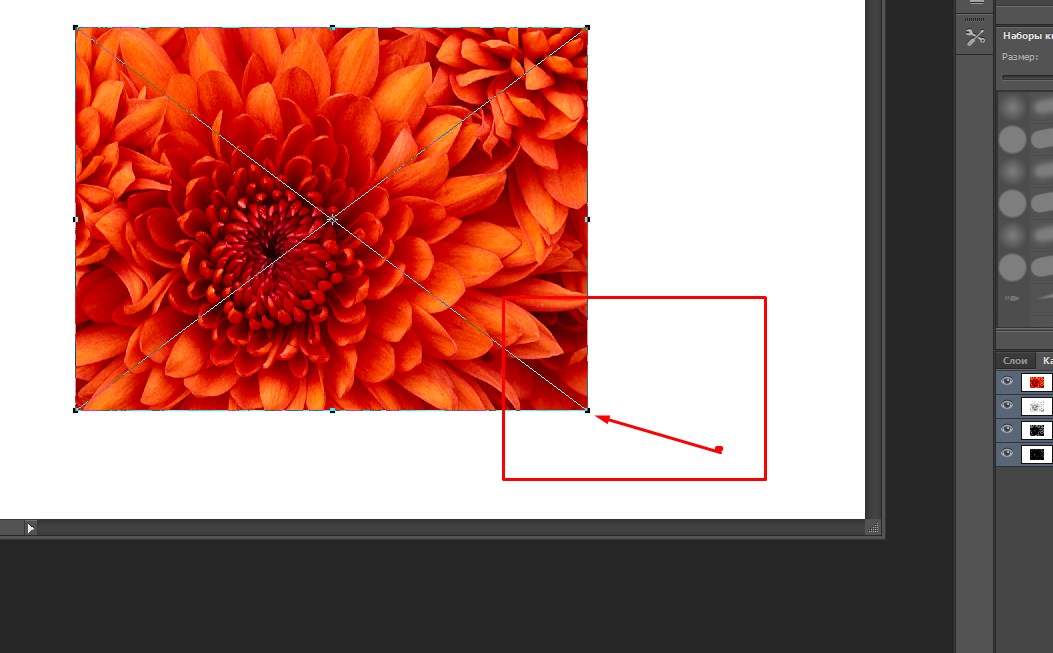 Разместить изображение в созданном файле, при помощи ползунков, за которые можно потянуть и изменить размер изображения, если он окажется больше, чем требуется.
