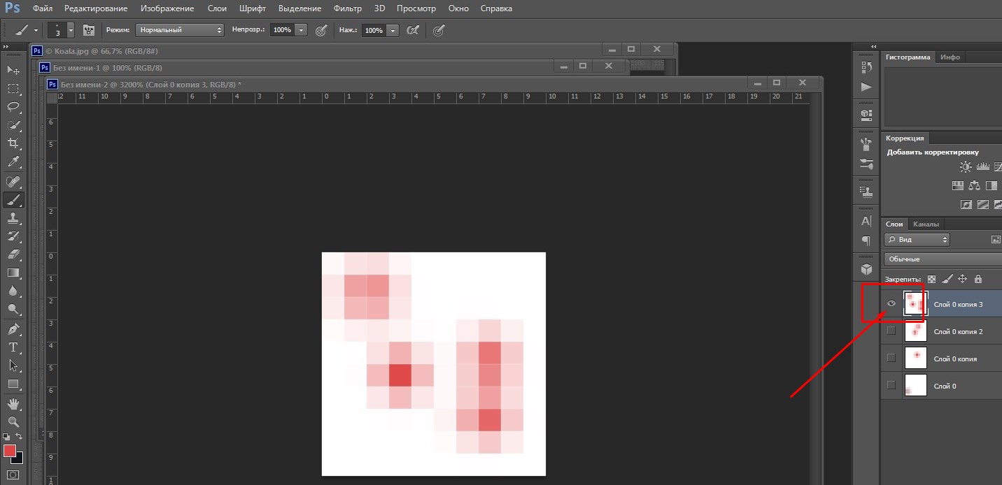 5. Оставляем только один активный слой. С остальных убрать пиктограмму «Открытый глаз».