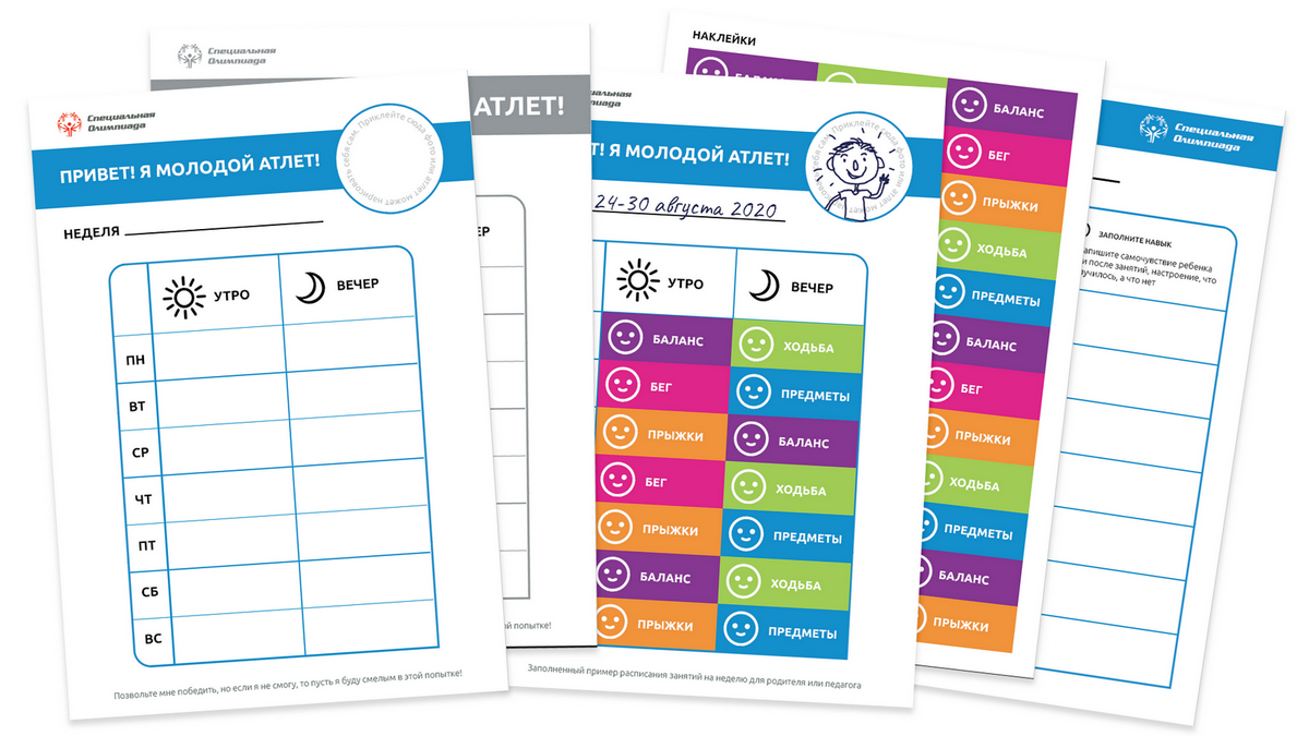 Получите на почту дневник занятий и наклейки в подарок от Специальной Олимпиады. Распечатайте файлы и отмечайте прогресс юных атлетов!