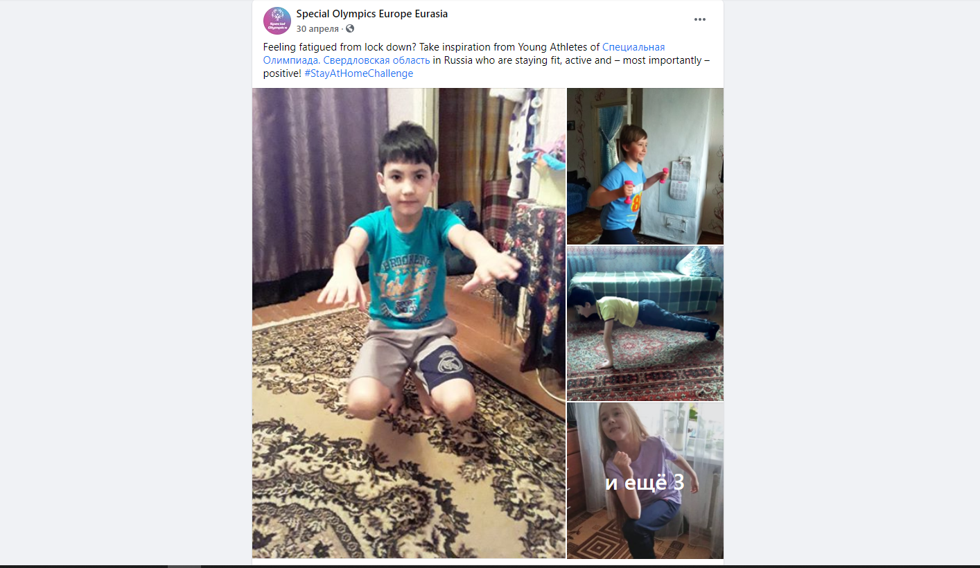 Фотографии домашних тренировок молодых атлетов Свердловской области опубликовали на Facebook-странице Специальной Олимпиады в Евразии